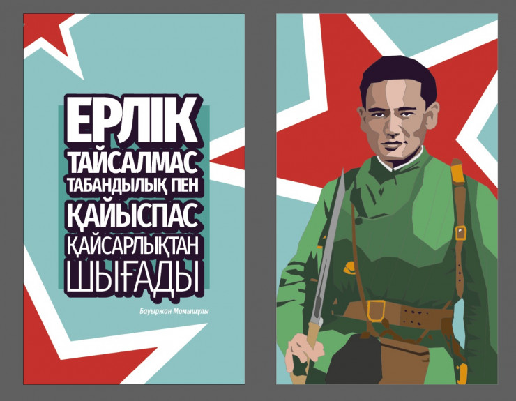 Художники рассказывают, что тщательно отбирали подходящее фото Момышулы и разрабатывали концепцию. "Данное изображение будет выглядеть масштабно и монументально на любой поверхности, передавая образ великого казахского воина. Масштабные залитые цвета на фоне (красная звезда ассоциируется с Советским Союзом, так же как и голубой цвет неба отсылает к флагу независимого Казахстана), также эти цвета рассказывают нам историю Второй мировой войны и участие казахского народа в ней", - говорится в творческом пояснении к эскизу.