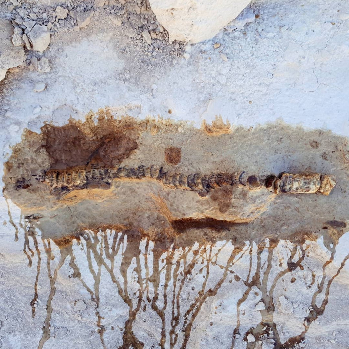 "Через неделю я вернулся к месту находки и залил останки полимерным клеем, чтобы извлечь их и они не рассыпались. Клей не высох, пришлось оставить до этой субботы. Прогноз показал сильный дождь, я боялся, что его размоет, и поехал забрать, несмотря на погоду.
