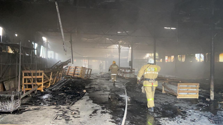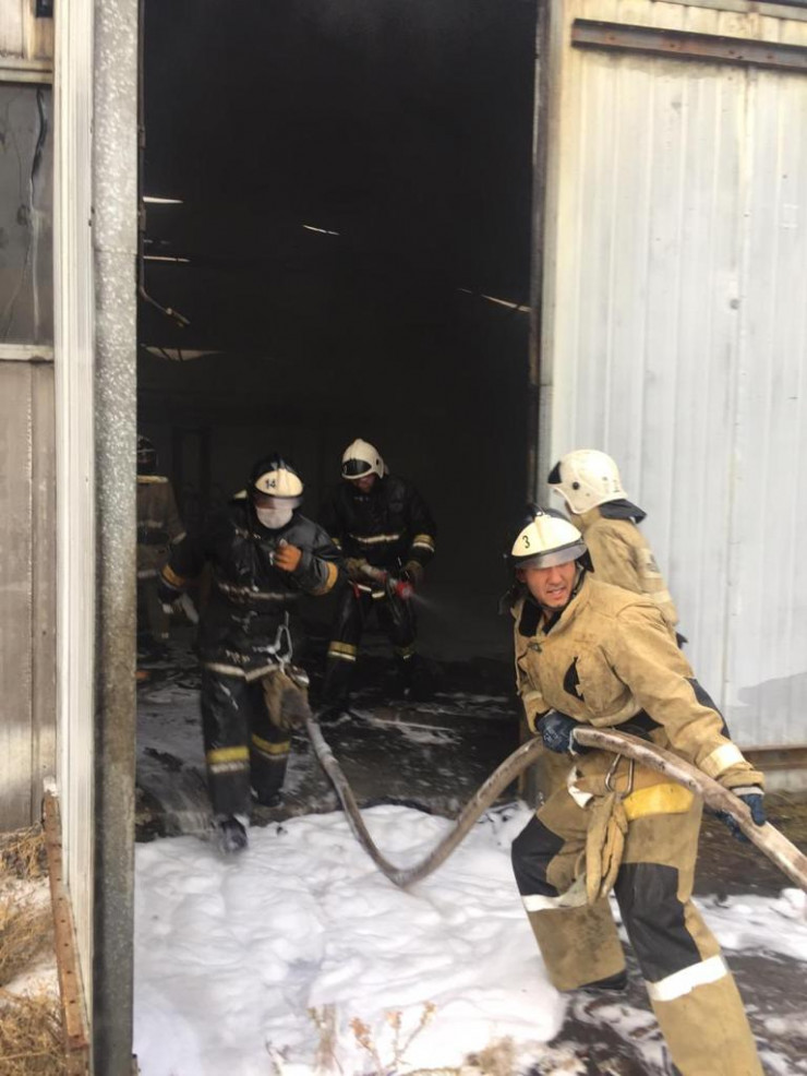 "По прибытии через семь минут обстановка сложилась следующая: открытым пламенем горел отдельно стоящий склад (одноэтажный). Угрозы распространения огня нет. Силы и средства наращиваются по повышенному рангу вызова. Склад полностью металлический, здание обесточено от электричества", - сообщили в ДЧС Алматы.