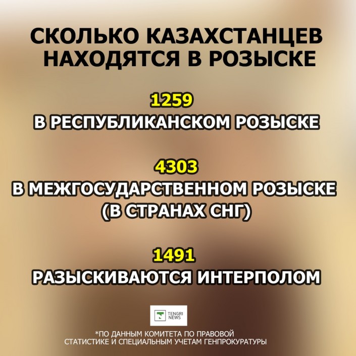 По состоянию на 19 июля 2018 года в республиканском розыске находятся 1 259 казахстанцев. Из них 54 человека скрываются от дознания, следствия, суда или уклоняются от осуществления пробационного контроля.