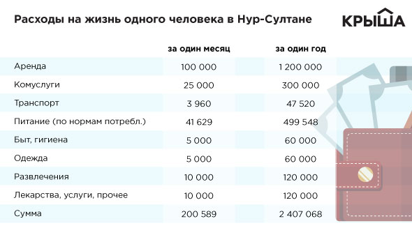 При проживании в арендной квартире в одиночестве на базовые нужды и крайне бюджетный досуг уйдет не менее 185 тысяч тенге. Если хотя бы немного расширить список потребления - более 200.