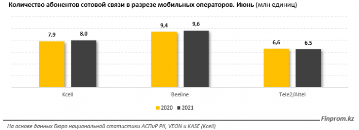 По данным finprom.kz, по итогам первого полугодия 2021 года в Казахстане насчитывалось 24,2 миллиона абонентов сотовой связи - на 1,2 процента больше, чем в прошлом году. Аналитики прогнозируют, что период с 2019-го по 2025 год число пользователей мобильного интернета увеличится на 54 процента. К тому времени 3G-сервисы будут составлять только 28 процентов от общего рынка, 4G-технологии займут 60 процентов, а новые сети 5G охватят уже 12 процентов рынка.