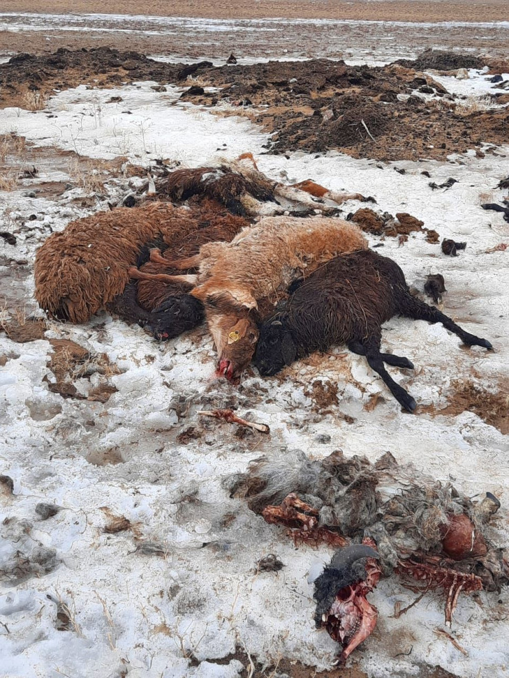 В Кызылкогинском районе в крестьянском хозяйстве "Ойтаң" от неизвестной болезни пало более 200 овец и 10 голов КРС. На видео, которое снял представитель крестьянского хозяйства (КХ) Айбар Ерекешов, запечатлено несколько мертвых животных.