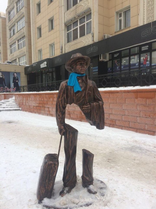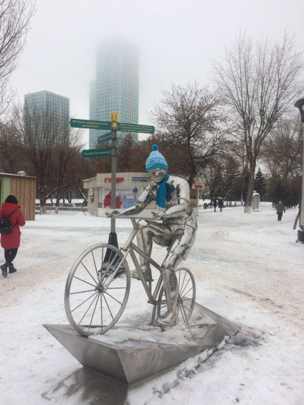 "По прогнозу погоды несколько дней будет снег, и городские персонажи напоминают вам о необходимости одеваться теплее!!!" - написал в Facebook Арман Турлубек.