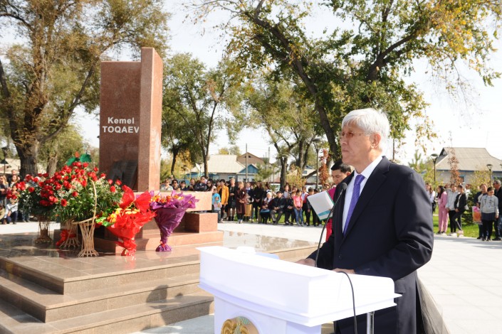 "Уважаемые жители Каратальского района! Сегодня мы собрались здесь по замечательному поводу: открытие сквера в честь 95-летия великого казахского писателя, известного журналиста, Человека с большой буквы, Кемеля Токаева, чей жизненный и творческий путь - яркий пример для подражания. Благородство, душевная красота гармонично дополняли его врожденный писательский талант и мастерство. Вклад его в развитие литературы, казахского языка трудно переоценить. Те нравственные ценности, которые он пропагандировал в своих произведениях, очень важны сегодня для нашего духовного возрождения и обновления. Поэтому очень здорово, что на его родине, в юбилейный для Каратальского района год, разбит этот прекрасный сквер как напоминание о нашем великом земляке, ветеране ВОВ, гражданине и патриоте, талантливом писателе, мастере слова Кемеле Токаеве. Память о нем навсегда останется в наших сердцах", - сказал Амандык Баталов.
