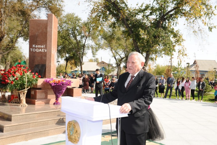 Сквер имени Кемеля Токаева торжественно открыт сегодня на малой родине видного писателя и журналиста, мастера детективного жанра, ветерана Великой Отечественной войны в Уштобе Каратальского района.
