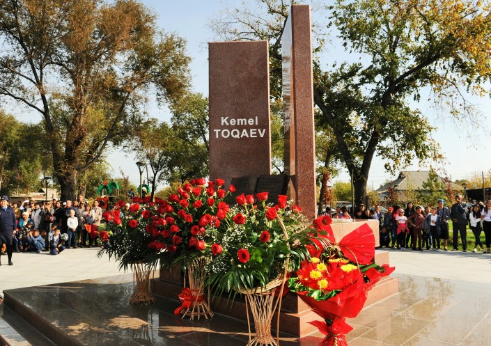 Торжественная церемония возложения цветов к установленному в сквере мемориалу Кемеля Токаева ознаменовала открытие парка. Затем с поздравительной речью выступил аким области.
