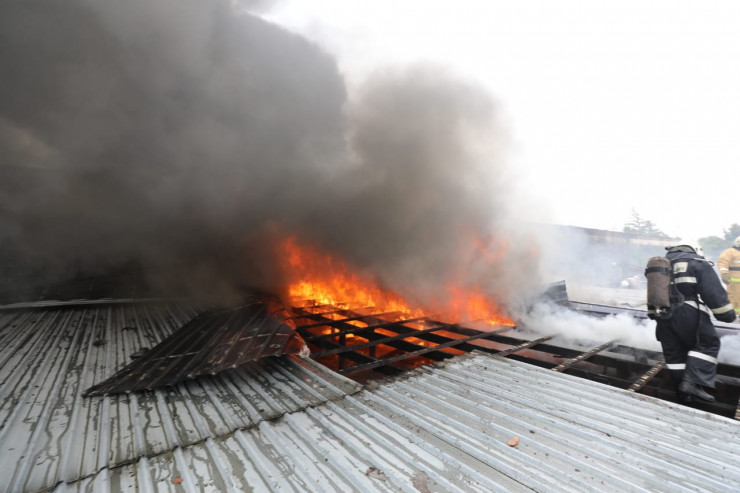 В ДЧС Алматы сообщили о масштабной работе по тушению пожара в здании нефункционирующего СТО в Наурызбайском районе по адресу: Райымбека, 548/2. Сообщение о пожаре поступило в 11.33. Прибывшие на место подразделения зафиксировали, что открытым пламенем горела кровля здания на площади 220 квадратных метров. На месте пожара развернут штаб, создано два пожарных участка с западной и юго-восточной стороны.