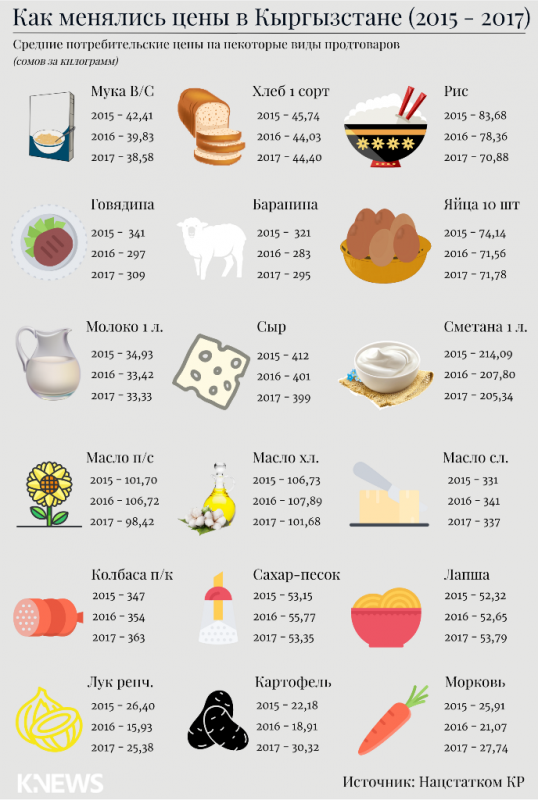 Национальный статистический комитет Кыргызской Республики опубликовал годовую публикацию "Цены в Кыргызской Республике". Издание K-News сравнило, где дешевле продукты повседневного потребления: в Казахстане или в Кыргызстане.