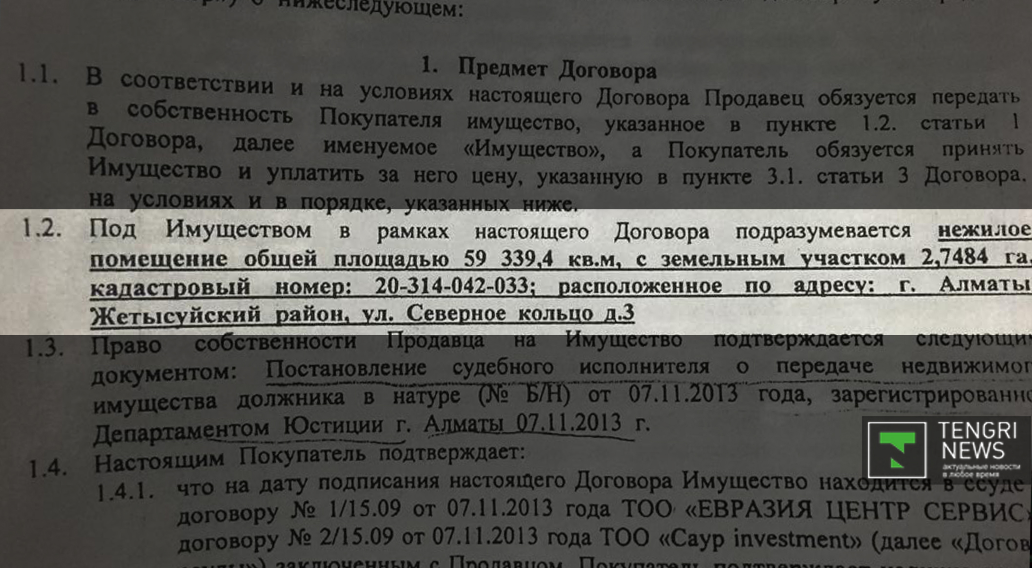 Согласно договору о купле-продаже между АТФ банком и ТОО "Алматы XXI век", площадь здания составляет 59 тысяч квадратных метров. Стоимость сделки - 8 миллиардов тенге.