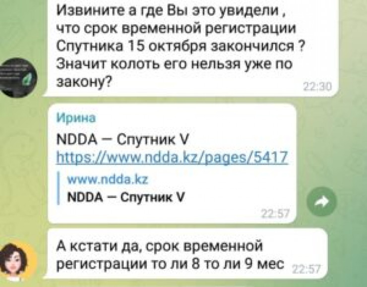 Пользователи Казнета распространяют информацию о том, что прививать людей вакциной "Спутник V" незаконно, так как регистрация препарата на территории Казахстана закончилась 15 октября этого года. В Министерстве здравоохранения опровергли информацию, передает Tengrinews.kz со ссылкой на StopFake.