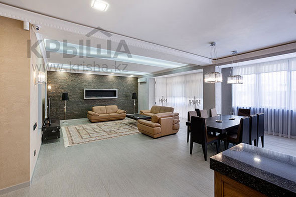 Третье место досталось 10-комнатным апартаментам площадью 500 квадратных метров за 900 миллионов тенге. Пентхаус расположен в двадцатиэтажке, имеет шикарную кухню-студию в 80 квадратных метров, террасу площадью восемь соток, несколько балконов.