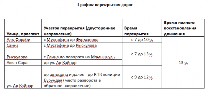 Организаторы велогонки просят жителей и гостей города Алматы при планировании своего дня обратить внимание на график перекрытия дорог, пролегающих по маршрутам дистанций. Всего участникам предложены на выбор три вида дистанций: профессиональная - 57 километров, основная - 34 и детская - 14 километров.