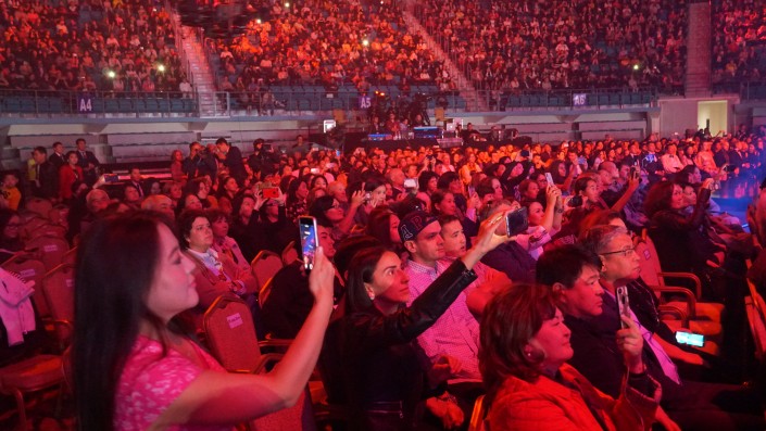 "Для меня большая честь в очередной раз выступить в столице Казахстана, в Астане, перед уважаемой мною, обожаемой казахской публикой, которую я люблю еще с далекого 90-го года, с того самого большого фестиваля, который открыл гостеприимно двери всему миру - с "Голоса Азии". Тогда это было "Азия даусы", а сейчас "Астана даусы", - обратился к казахстанцам Киркоров.