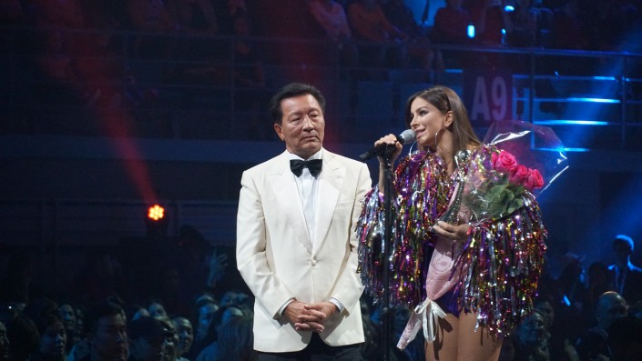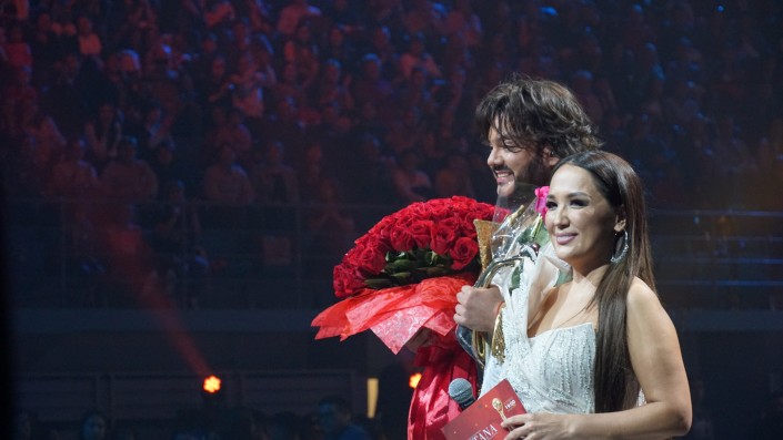 Памятную награду Киркорову вручила директор Седьмого канала Алия Бабаева. Знаменитый артист отметил, что вписался в нынешнюю церемонию и поблагодарил казахстанскую публику за теплый прием.