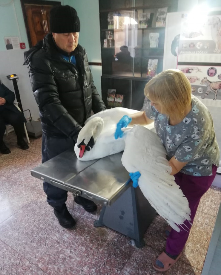 Сделав фото со спасенной самкой лебедя–шипуна, лесники доставили ее в ветклинику.