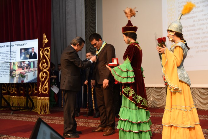 Спасшего пассажиров трамвая в Алматы афганского студента признали "Гордостью университета" Во время награждения.