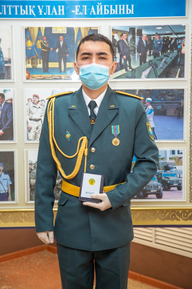 "За мужество и самоотверженность, проявленные при спасении жизней от пожара, приказом главы ведомства ефрейтор Темирлан Амиргазин был награжден медалью "Құқық тәртібін қамтамасыз етуге қосқан үлесі үшін", - говорится в сообщении.