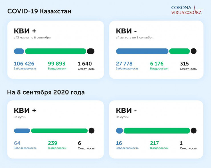 За сутки в Казахстане от коронавируса и коронавирусной пневмонии скончались семь человек, передает Tengrinews.kz со ссылкой на Сoronavirus2020.kz.