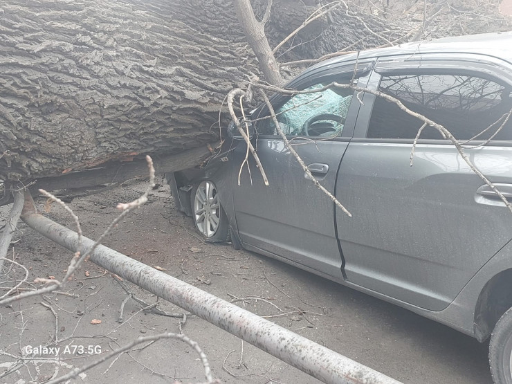 Старое дерево упало на машины и дома: алматинцы пожаловались на бездействие Кадры из видео