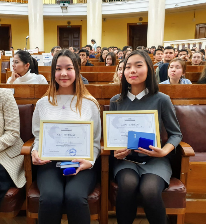 Обладателями стипендии стали студенты второго курса Лаура Кайбулдина (мастер спорта по художественной гимнастике) и Анар Искендирова (кандидат в мастера спорта по ушу), а также шахматист, студент первого курса Талгат Садыков.