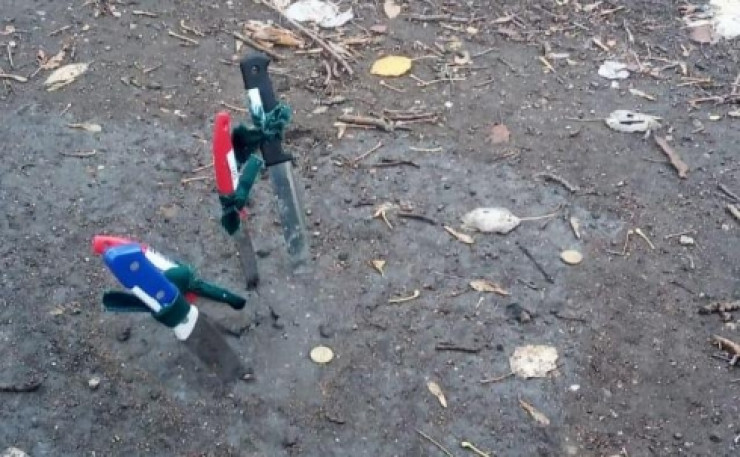 "То, каким образом лезвия были погружены в грунт, напомнило им результат совершения магического ритуала. Рукоятки ножей, на которые были навязаны зеленые ленты, торчали в четыре разные стороны. Земля под ними была полита неизвестной жидкостью. На ней находилась разбросанная мелочь", - отмечает издание.