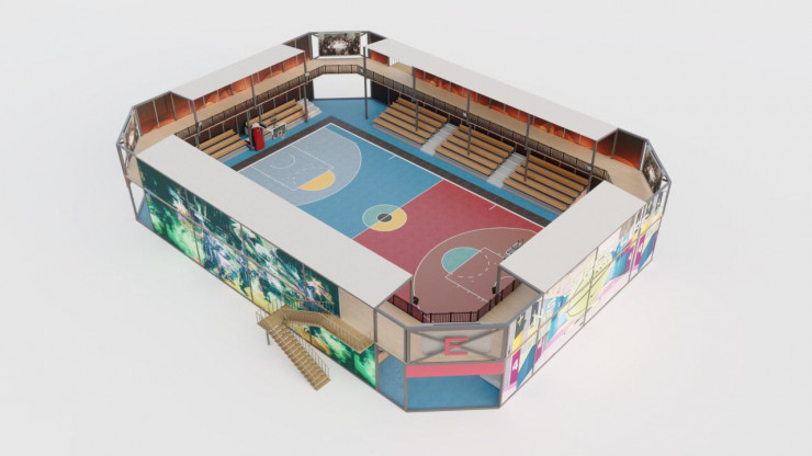 На площадке будут проводить соревнования по баскетболу, футболу, турниры по боксу и танцевальные состязания. Зимой арену могут трансформировать в ледовый каток.