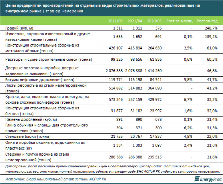 В то же время, по данным НПП "Атамекен", рост стоимости стройматериалов заметно выше. Так, заместитель председателя правления НПП "Атамекен" Арман Мамбетаев сообщил, что при первичном анализе в годовом выражении стоимость отдельных материалов выросла в два и более раза. Причем рост наблюдается практически ежедневно.