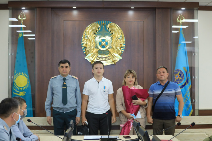 В МЧС сообщили, что приказом министра Юрия Ильина в Алматы прошло награждение 18-летнего студента физкультурного факультета педагогического университета имени Абая Ерасыла Махмуда. Он был награжден нагрудным знаком "Төтенше жағдайдағы Ерлігі үшін" за спасение ребенка.