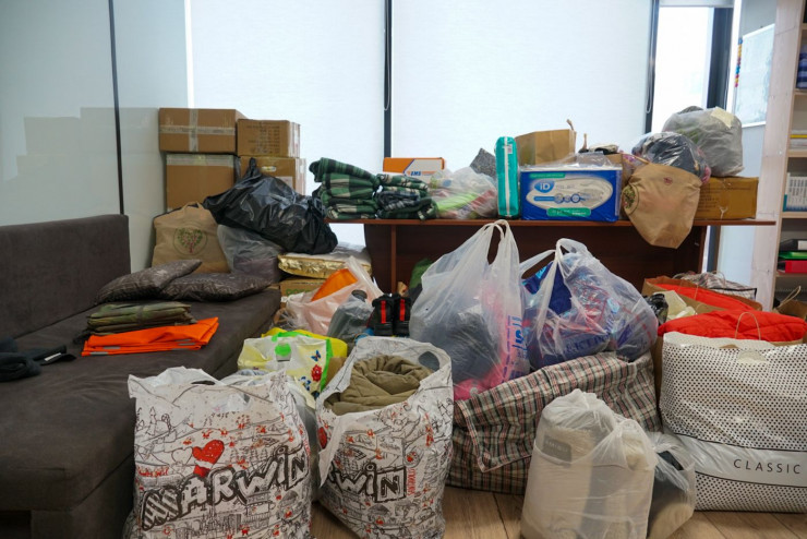 С 8 февраля астанчане несут гуманитарную помощь во фронт-офис волонтеров. Куртки, шапки, теплые пледы, палатки, мыломоющие средства и предметы личной гигиены. Некоторые приезжают на автомобилях и заносят большие сумки с вещами по несколько раз.