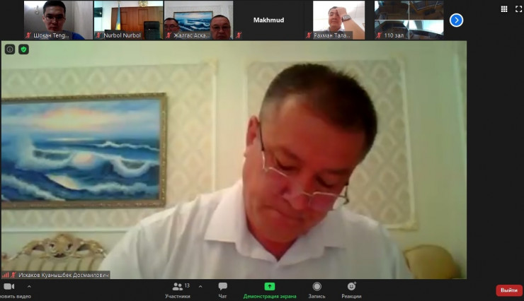 Куанышбек Искаков на судебном процессе в режиме онлайн (крайний нижний левый угол)