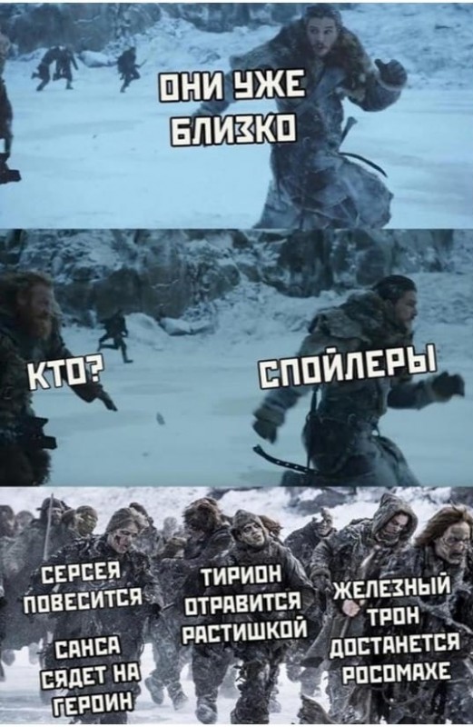 К слову, уже привычное за последний месяц словосочетание-предупреждение "Осторожно, спойлеры" обыграли пользователи сетей в виде мема. Asell Maratova опубликовала его на своей странице в Facebook