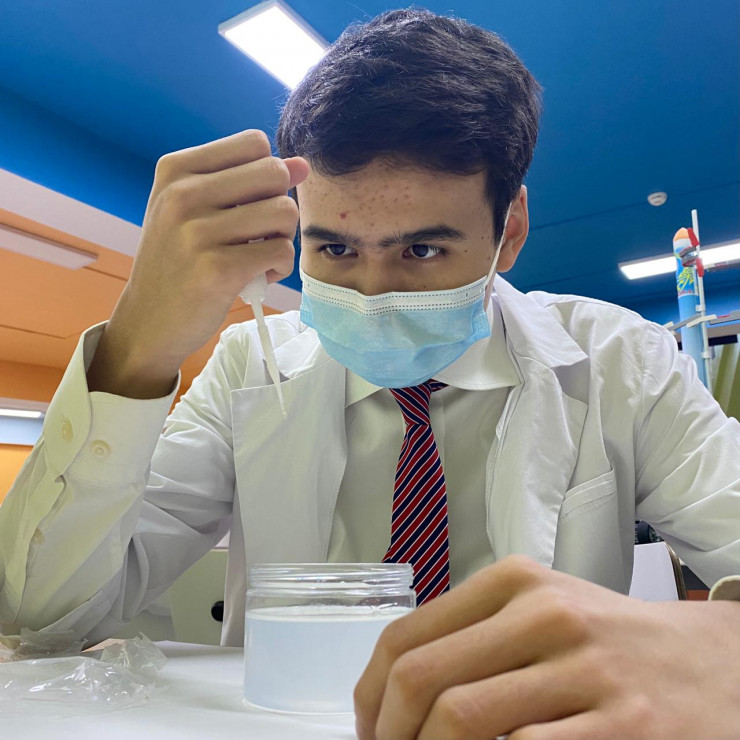 "Мой друг Алдияр Пазилов предложил сделать совместный проект в сфере биологии. Решили сделать фотобиореактор. Это небольшая установка, у нее внутри водоросли и она очищает воздух вокруг себя и вырабатывает кислород. Закупили микроводоросли. На создание установки ушло четыре месяца, нам помогал профессор НИШ, а потом начали тестировать.