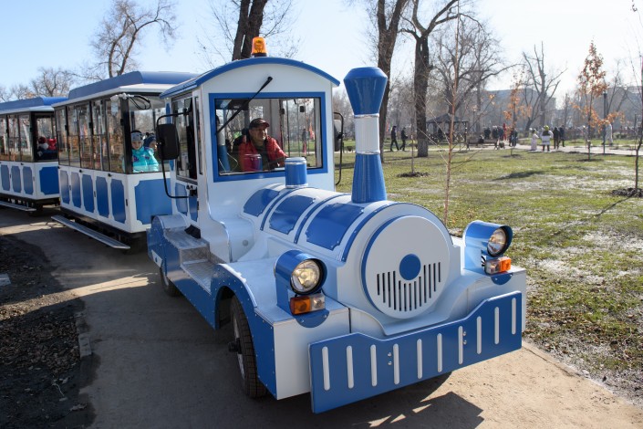 Еще одним приятным сюрпризом для детишек стал новый поезд на 40 мест, на котором они с удовольствием покатались. Надо сказать, что в честь открытия парка все аттракционы до конца дня действуют бесплатно.