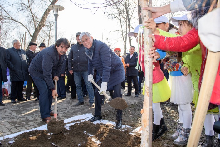 Ознакомившись с обустройством парка и работой аттракционов, аксакалы, спортсмены и дети вместе с акимом области высадили несколько саженцев молодых деревьев. В целом сегодня парк украсили 50 саженцев берез из Польши.