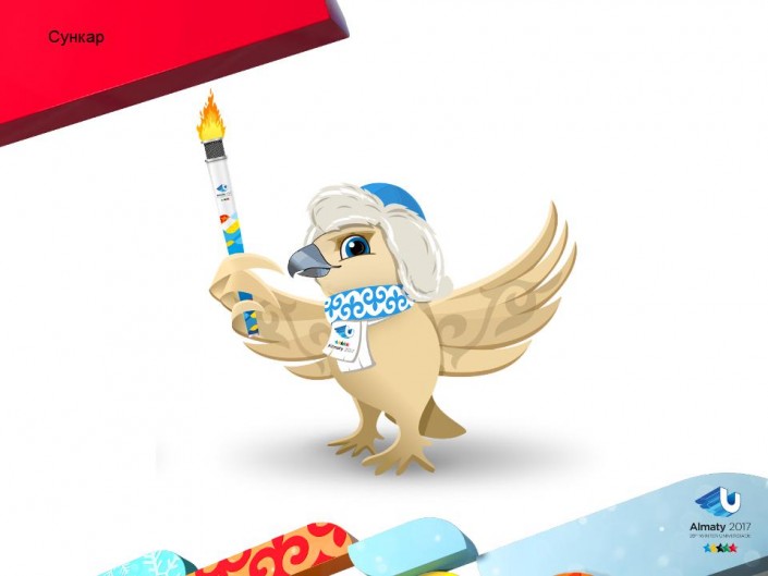 По словам руководителя Дирекции по подготовке и проведению зимней Универсиады Наиля Нурова, этот вариант талисмана уже третий. Было решено назвать его "Сункар" и нарядить в шапку-малахай и шарф с национальным орнаментом. Нуров добавил, что сложнее всего создателям было совместить доброжелательность талисмана с суровым характером птицы-сокола. "Есть мнение, что талисман удачный, если из него можно сделать мягкую игрушку", - добавил глава дирекции.