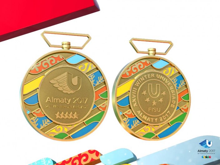 Кроме того, были представлены наградные медали. Они выполнены в классическом стиле из металлических сплавов, похожих на золото, серебро и бронзу. Медали выполнены методом чеканки на казахстанском Монетном дворе. На аверсе размещен логотип Международной федерации студенческого спорта FISU, название игр и место проведения. На реверсе - логотип Универсиады. Нуров добавил, что в FISU не разрешили добавить на медали логотип EXPO.