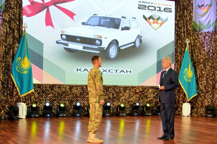 За высокие достижения в конкурсах военнослужащим вручили ценные подарки: победителю конкурса "Снайперский рубеж" младшему сержанту Нурсултану Бактыоразу - автомобиль, конкурса "Мастера артиллерийского огня" - сержанту Габиту Даулетову - автомобиль, членам расчета - телевизор, лучшему экипажу "Танкового биатлона" - командиру танковой роты в/ч 10810 старшему лейтенанту Асылбеку Мусырманкулову - автомобиль, членам экипажа - телевизор.
