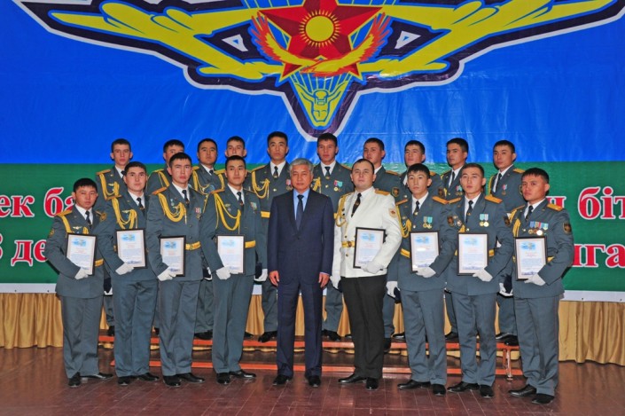 Из рук главы оборонного ведомства РК молодые офицеры получили грамоты, ценные подарки и нашивки "Үздік маман командир".