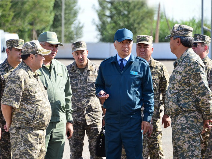 Министр обороны РК Имангали Тасмагамбетов провел выездное совещание на территории военного сектора аэропорта "Аулие-Ата" в Таразе и на полигоне "Матыбулак", сообщает Tengrinews.kz со ссылкой на пресс-службу оборонного ведомства.