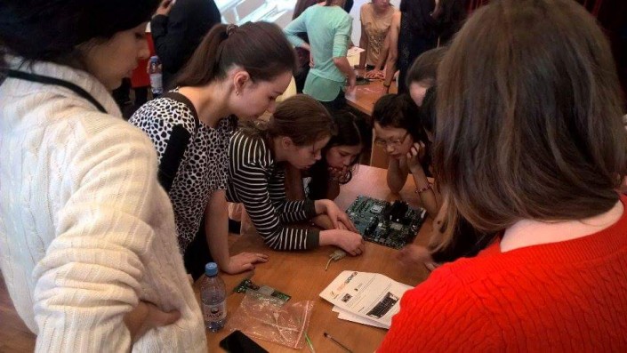 Девочки получили практический опыт работы с компьютерными платами, изучили каждый из их компонентов. Эту интерактивную сессию в игровой форме провели Эйлен Брювер из компании Symantec, Ребекка Бисвас из компании Juniper Networks, а также несколько других наставников.
