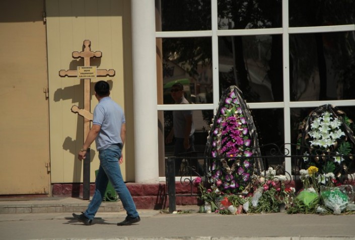 8 июня в Актобе состоялось прощание с погибшими во время теракта - случайными жертвами. Среди них бывший продавец оружейного магазина "Паллада" Андрей Максименко, пенсионер Николай Онищенко, случайно оказавшийся рядом с местом происшествия, и рыбак Михаил Матросов, зашедший в магазин купить снасти.