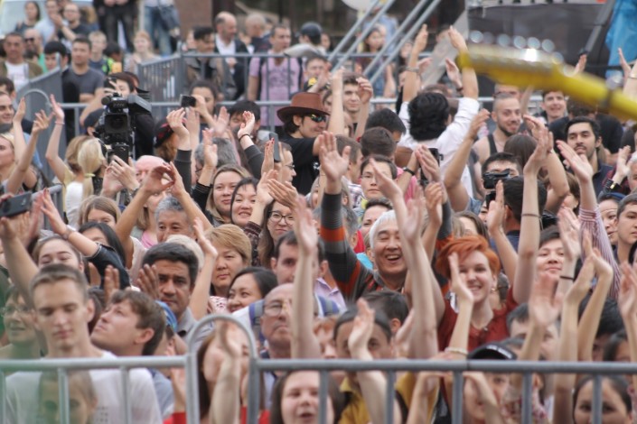 Если вы сегодня далеко от Алматы и не можете прийти на open-air-площадку перед Дворцом Республики, вас ждет качественная онлайн-трансляция c многоканальным звуком, которую можно будет посмотреть на сайте Tengrinews.kz и в социальных сетях проекта The Spirit of Tengri.
