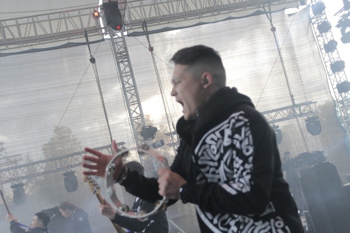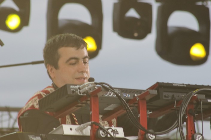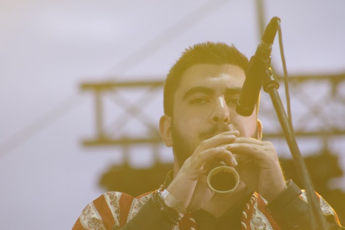 21.33 На сцену выходит группа Speed Caravan, год назад завоевавшая сердца публики своей невероятной энергетикой. В составе мультинационального афро-рок-коллектива музыканты из Алжира и Франции. Они исполняют музыку, в которой можно найти отсылки к The Cure и The Chemical Brothers, при этом с арабским колоритом.