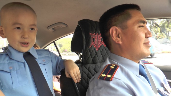 "Ребенок тщательно подготовился к встрече: он был одет в полицейскую амуницию и был в отличном настроении. Адилету было интересно и весело принимать участие в патрулировании, сидя рядом с сотрудниками полиции. Малыш почувствовал себя настоящим полисменом. Отчасти так оно и есть, ведь каждый прожитый день для него проходит в борьбе и считается уже победным.