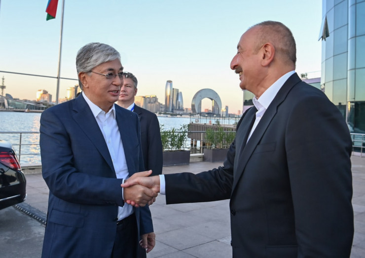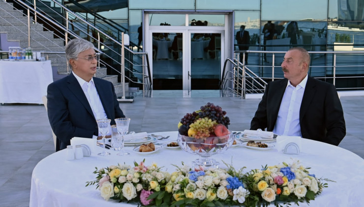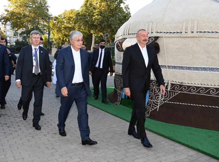 Сообщается, что лидеры Казахстана и Азербайджана осмотрели набережную Каспийского моря, а также посетили установленную здесь казахскую юрту.