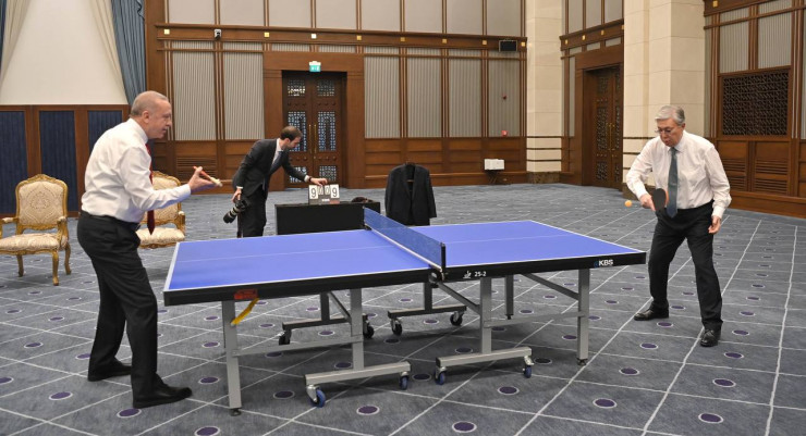 Президент Казахстана Касым-Жомарт Токаев и Президент Турции Реджеп Тайип Эрдоган сыграли партию в настольный теннис по окончании официальных мероприятий, передает Tengrinews.kz.