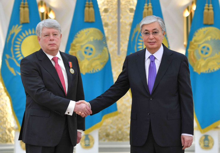 Как отметила пресс-служба Президента, в ходе церемонии награждения Касым-Жомарт Токаев отметил, что вручает высокую государственную награду нашей страны чрезвычайному и полномочному послу Российской Федерации Алексею Бородавкину в знак признания его больших заслуг в деле укрепления союзнических отношений, дружбы и сотрудничества между нашими государствами.