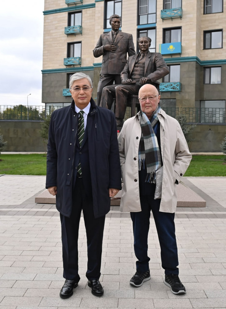 Токаев открыл памятник Ауэзову и Мухамедханову в Семее