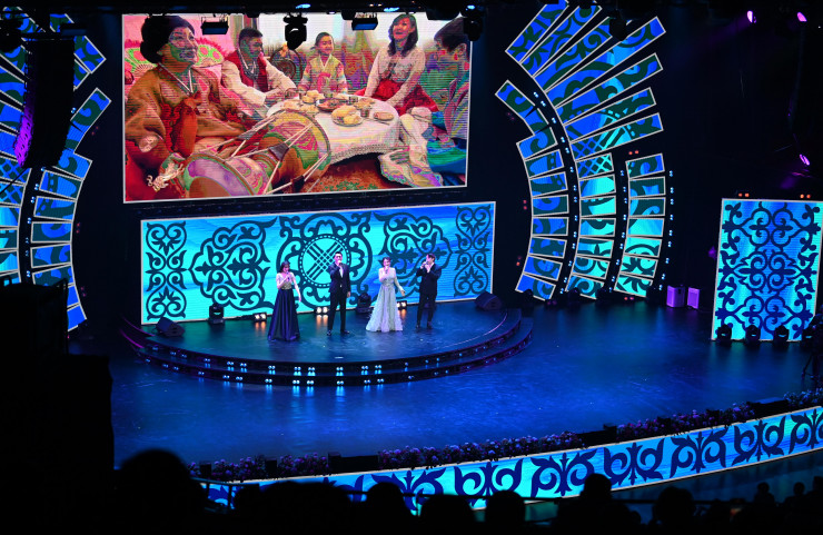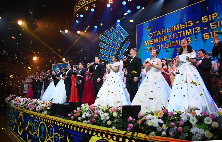 На сцене центрального концертного зала "Қазақстан" выступили известные певцы Роза Рымбаева, Димаш Кудайберген, Рухия Байдукенова, Алишер Каримов, Биржан Хасангалиев, Ушкын Жамалбек, Тамара Асар, а также солисты театра "Астана Балет", танцевальные коллективы Contrast, Terra и другие деятели искусства.
